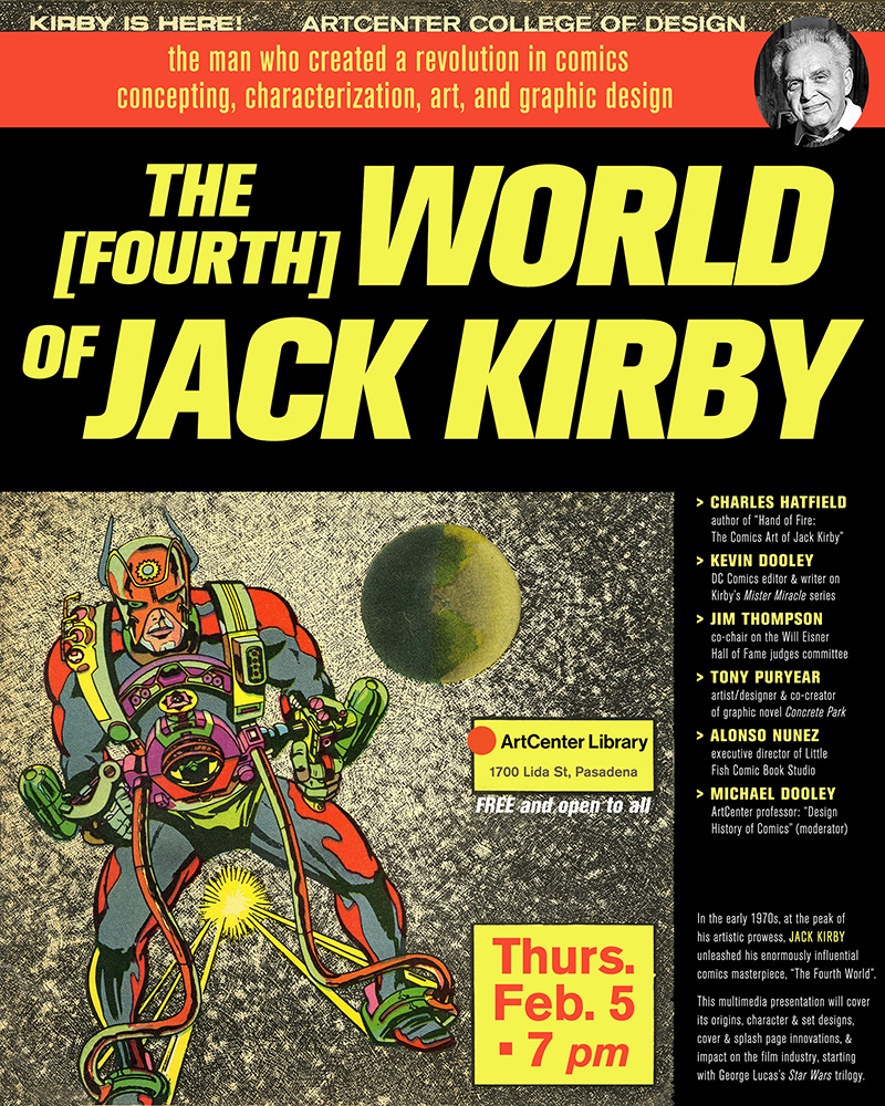 I expect to be at the Museum’s booth on Thursday between 3:30 and 5:30pm, signing and selling copies of my Eisner-winning Hand of Fire: The Comics Art of Jack Kirby (2011) and the exhibition catalog Comic Book Apocalypse: The Graphic World of Jack Kirby (2015). Please drop on by, say hello, and chat with me about Kirby! My books will be discounted a bit, and portion of all sales will go to the Kirby Museum.