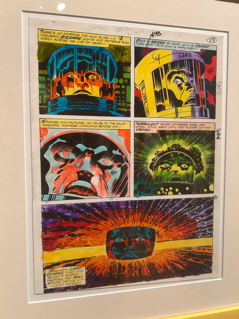 • This show is properly Kirby-focused, that is, art-focused, not character, property, or brand-focused. There are nods to Kirby’s influence and the spread of his designs beyond his drawing board, and of course the show has a lot to say about Marvel, but it’s Kirby as artist, storyteller, worldbuilder, and visionary that towers over it all.