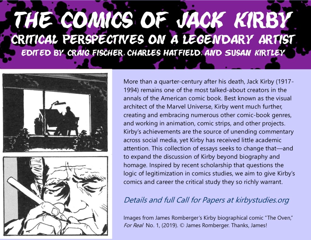 My introductory comics studies course at CSU Northridge, Comics & Graphic Novels (a bad name, and I’m to blame for it), is focusing on Kirby this semester. That’s a focus my classes haven’t had since 2015. Why again now? Mainly because of the Skirball’s splendid exhibition, Jack Kirby: Heroes and Humanity, which I’ve written about here before and which my students are required to visit. That exhibit, curated by Patrick Reed and Ben Saunders, is open until March 1 next year, and I’m determined to take classes to it. When you’ve got that kind of resource in town, that big and historic a show, not using would be a terrible waste. So, we’re going there, and that means I’ve had to redesign my course yet again! Glad to do it.