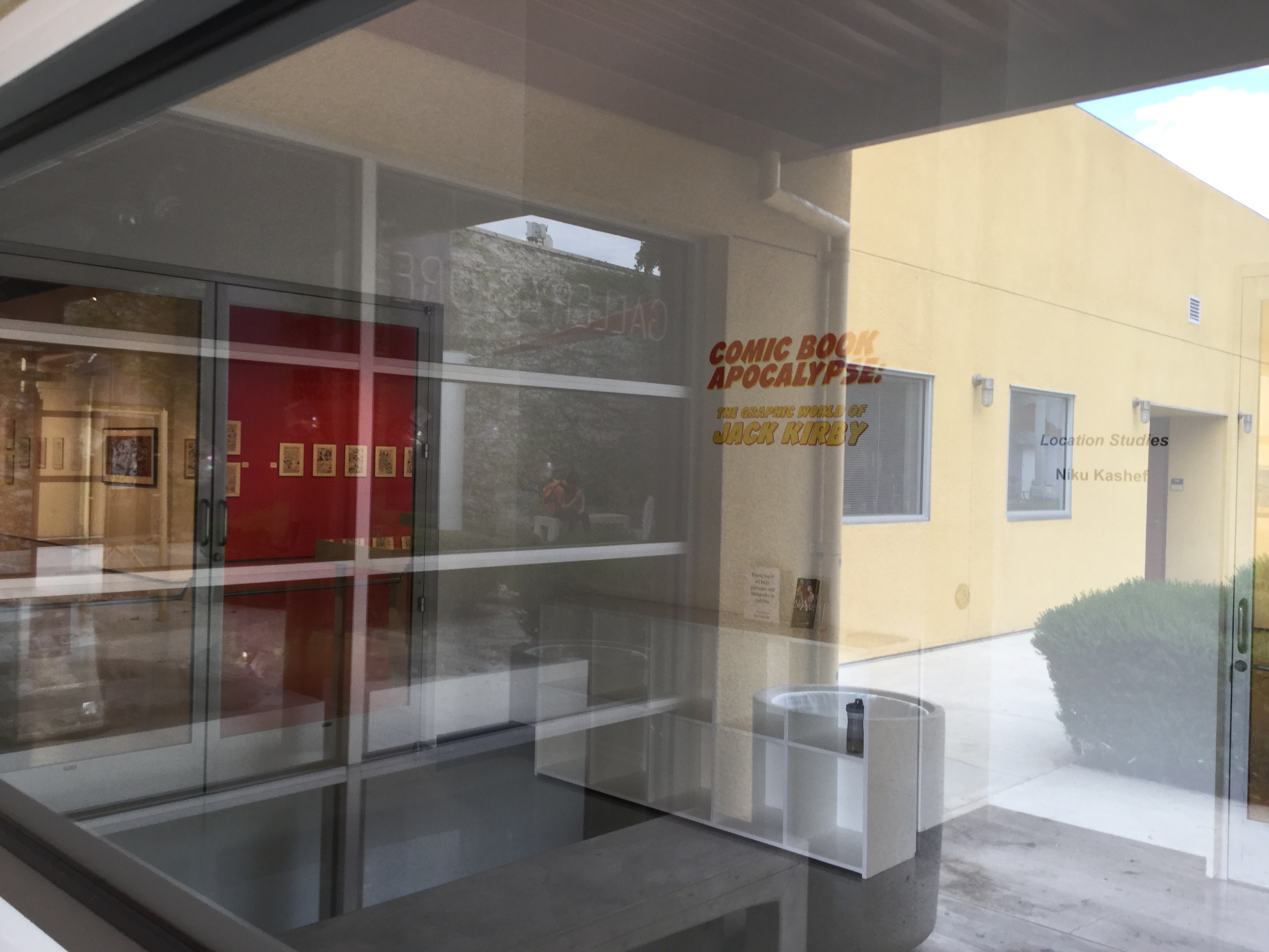 Comic Book Apocalypse: The Graphic World of Jack Kirby had its grand opening reception yesterday, Saturday, August 29. And it was grand. It was busy, it was crowded, and it got an amazing response. The whole three-plus hours kept me busy from start to finish (and beyond), in a mad, delightful shmoozefest. Conversation about Kirby and his extraordinary work went on all night. From lenders, colleagues, and friends, to my precious family, to artists and creators of all stripes, to CSUN and high school students with questions—whew, we did not stop. Such an incredible outpouring of enthusiasm and gratitude for the art of Jack Kirby!