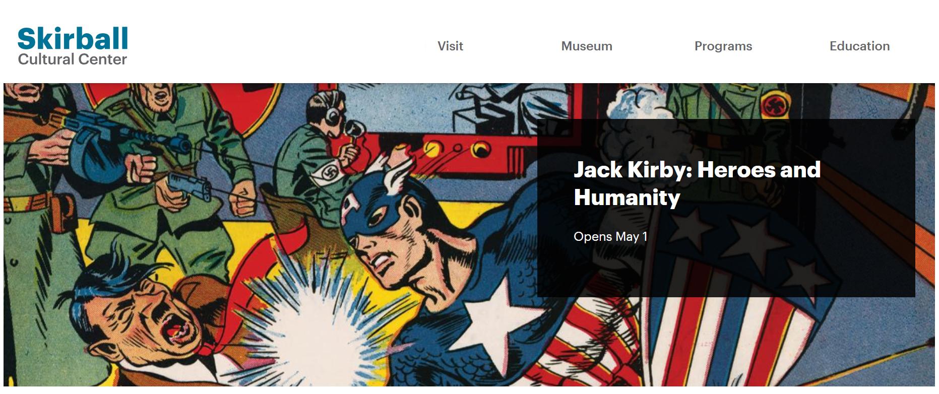This Thursday, May 1, the Skirball Cultural Center here in Los Angeles opens its exhibition Jack Kirby: Heroes and Humanity, co-curated by Patrick Reed and Ben Saunders in collaboration with Michele Urton, the Skirball’s Museum Deputy Director. This exhibition, the first career-spanning Kirby show in an American museum,