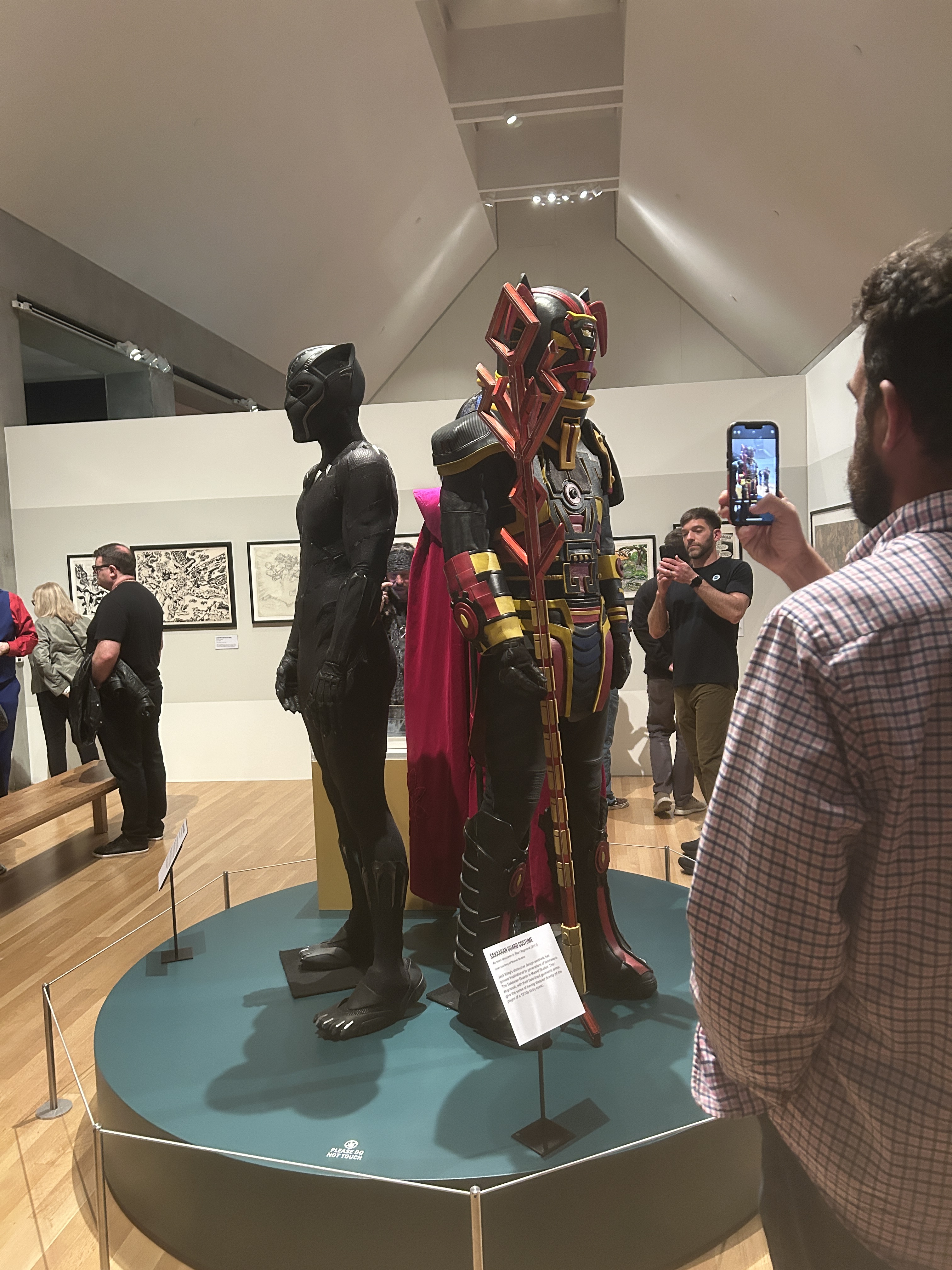 Having curated the Kirby exhibition Comic Book Apocalypse in 2015, I’m of course keenly interested in all this! Patrick Reed and Ben Saunders, colleagues and friends of mine, have had ample experience creating comics and pop culture exhibitions both individually and together. In fact, Ben and I worked closely together on Comic Book Apocalypse, and co-edited its companion book. Ben significantly shaped that show. I’ve been in awe of his curatorial work; in 2018, I reviewed here a show that he spearheaded, the traveling Marvel: Universe of Super Heroes, and I’ve seen several of his other exhibitions too (check out this stunner for instance). In addition, I’ve seen Patrick and Ben’s jointly curated Spider-Man: Beyond Amazing, which opened at the Comic-Con Museum in 2022 and has since traveled. So, I can’t speak disinterestedly about these things — but, FWIW, I think their record is stellar. Further, the Skirball is a wonderful venue with a history of creating or hosting exhibitions that I’ve loved, so I’m stoked. I hope to take several groups of students to Heroes and Humanities over the next ten months.
